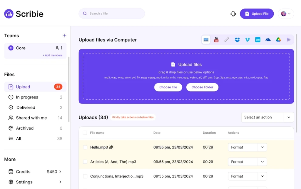 Minimum project fees apply, so Ditto is typically better suited to larger or ongoing transcription needs rather than one-off short files.