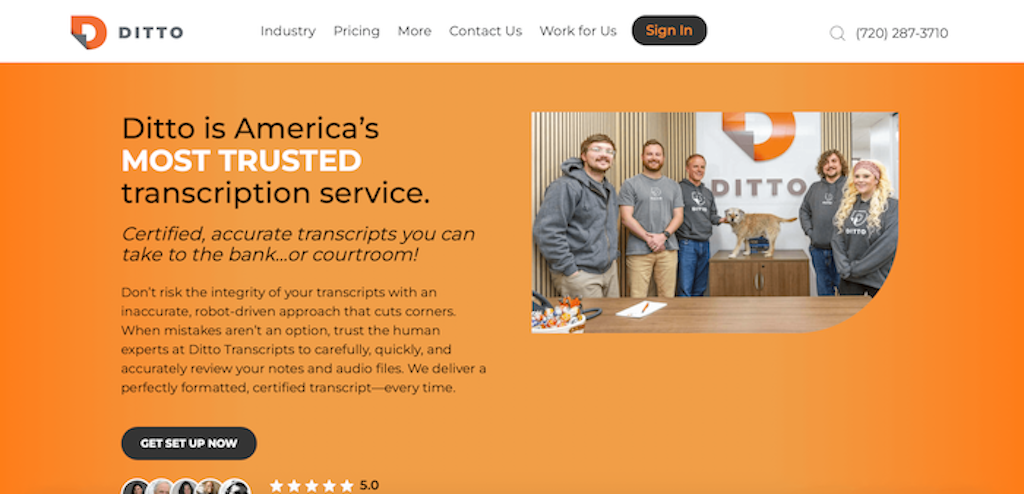 Ditto uses category-based pricing and emphasizes compliance-oriented workflows. It also offers add-ons such as verbatim transcription, timestamps, and notarization, which are common in legal environments.
