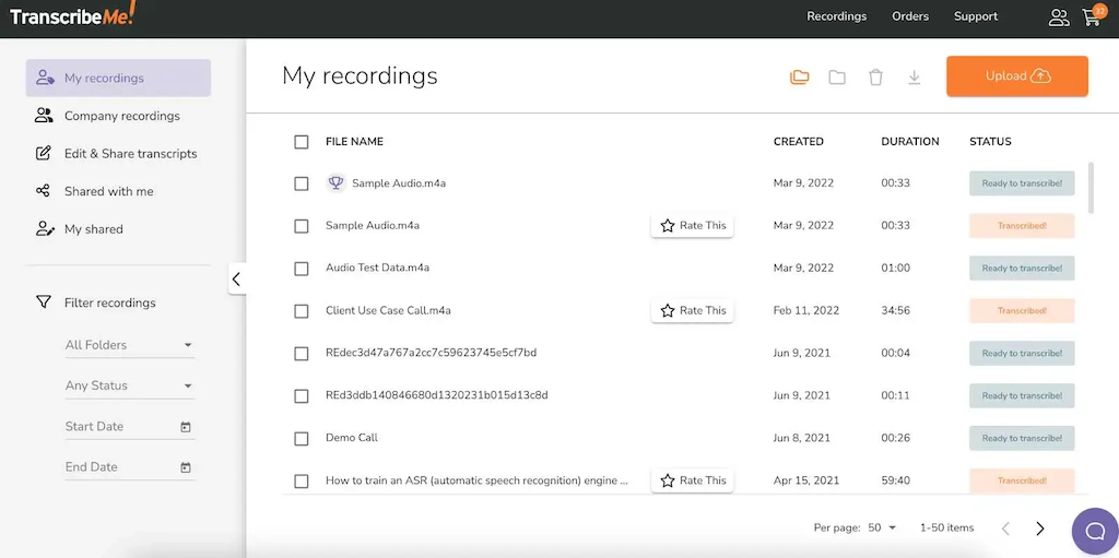TranscribeMe offers several service tiers, ranging from lower-cost draft transcripts to higher-accuracy options. This structure works well for internal workflows where some transcripts are for reference only, while others are client-facing.
